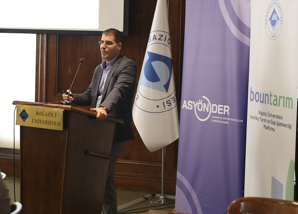 Etkinlikte konuşan Bountarım (Boğaziçi Üniversitesi Yenilikçi Tarım ve Gıda İşletmeciliği Platformu) Kurucu Üyelerinden Prof. Dr. Gökhan Özertan, bu tür etkinliklerin akademi ve sektörün buluşması açısından değerli olduğundan bahsetti.